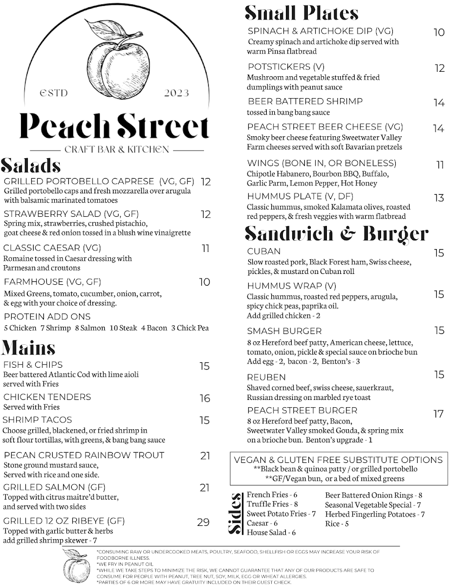 Whether you’re a local or just passing through, Peach Street Grill is sure to leave you satisfied and eager for a return visit.