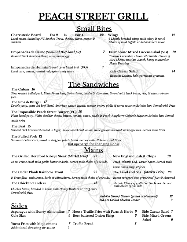 Introducing Peach Street Grill, a delightful dining destination nestled in Tellico Plains, Tennessee. This charming establishment is known for its eclectic menu that captures the essence of comfort food while offering a modern twist. From the mouthwatering ½ lb smash burgers to the delectable beer cheese dip, each dish promises to tantalize your taste buds.